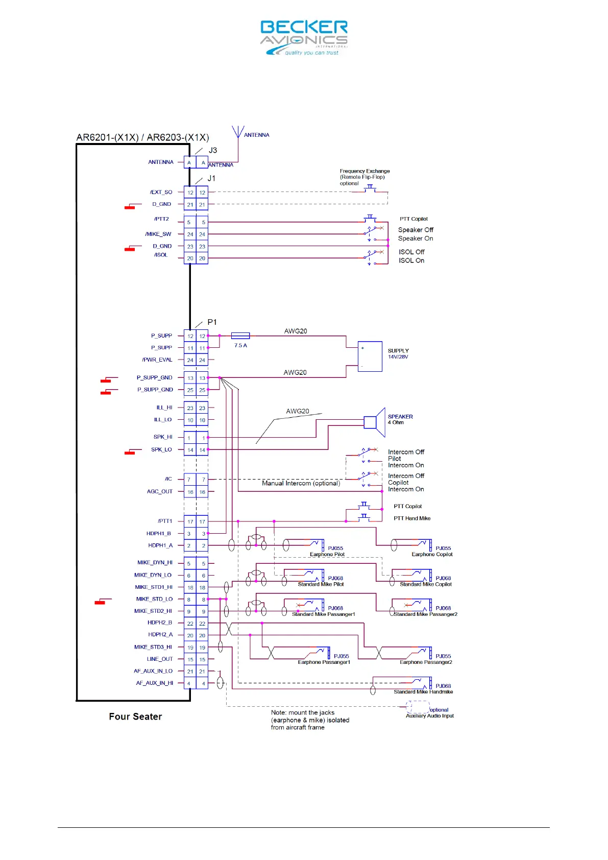 Figure 2-25: Typical Wiring for Aircraft with Four Seats (no TANDEM)