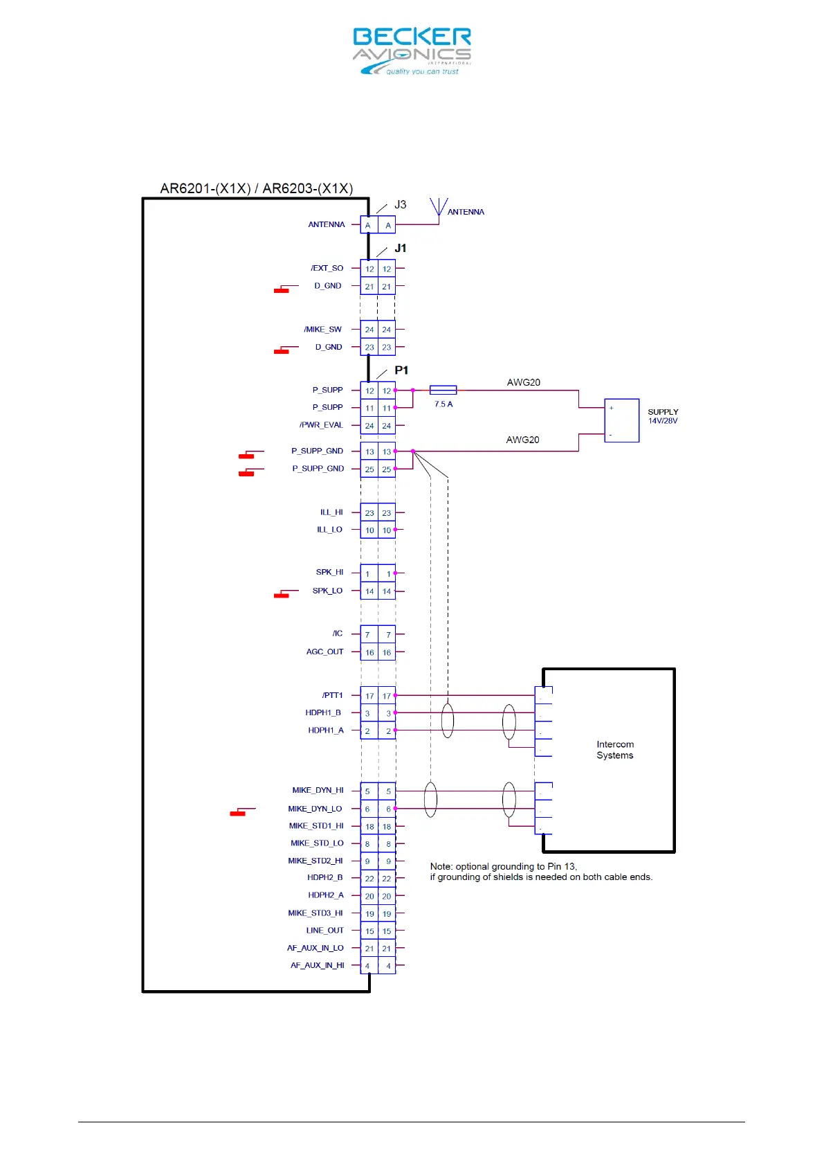 Figure 2-28: Typical wiring for aircraft with Intercom System (balanced)