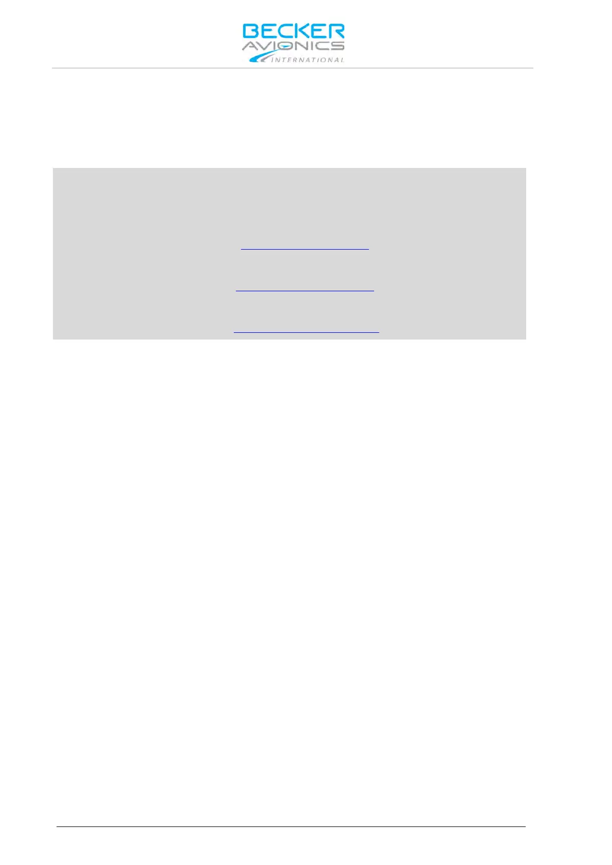 In case of additional questions contact your local Becker Avionics dealer or forward your request direct