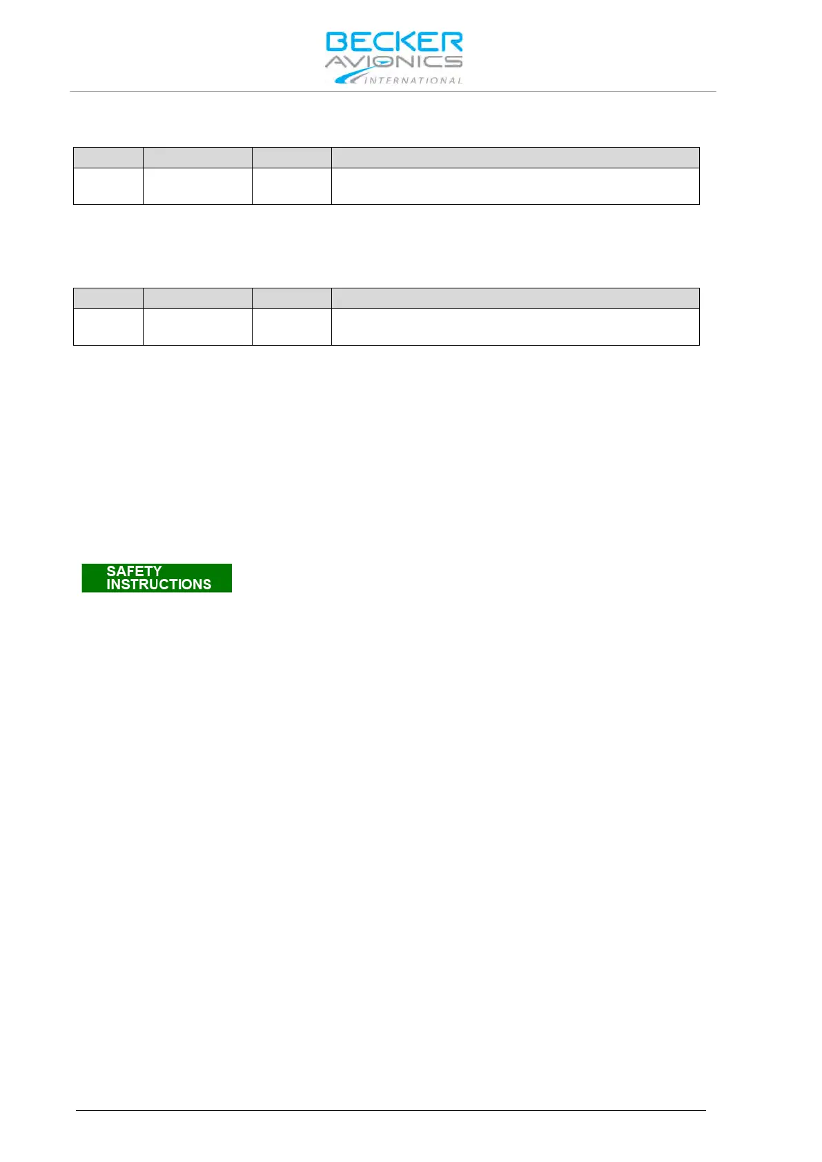 • Type-specific cable harnesses are also available for the aircraft wiring (contact Becker