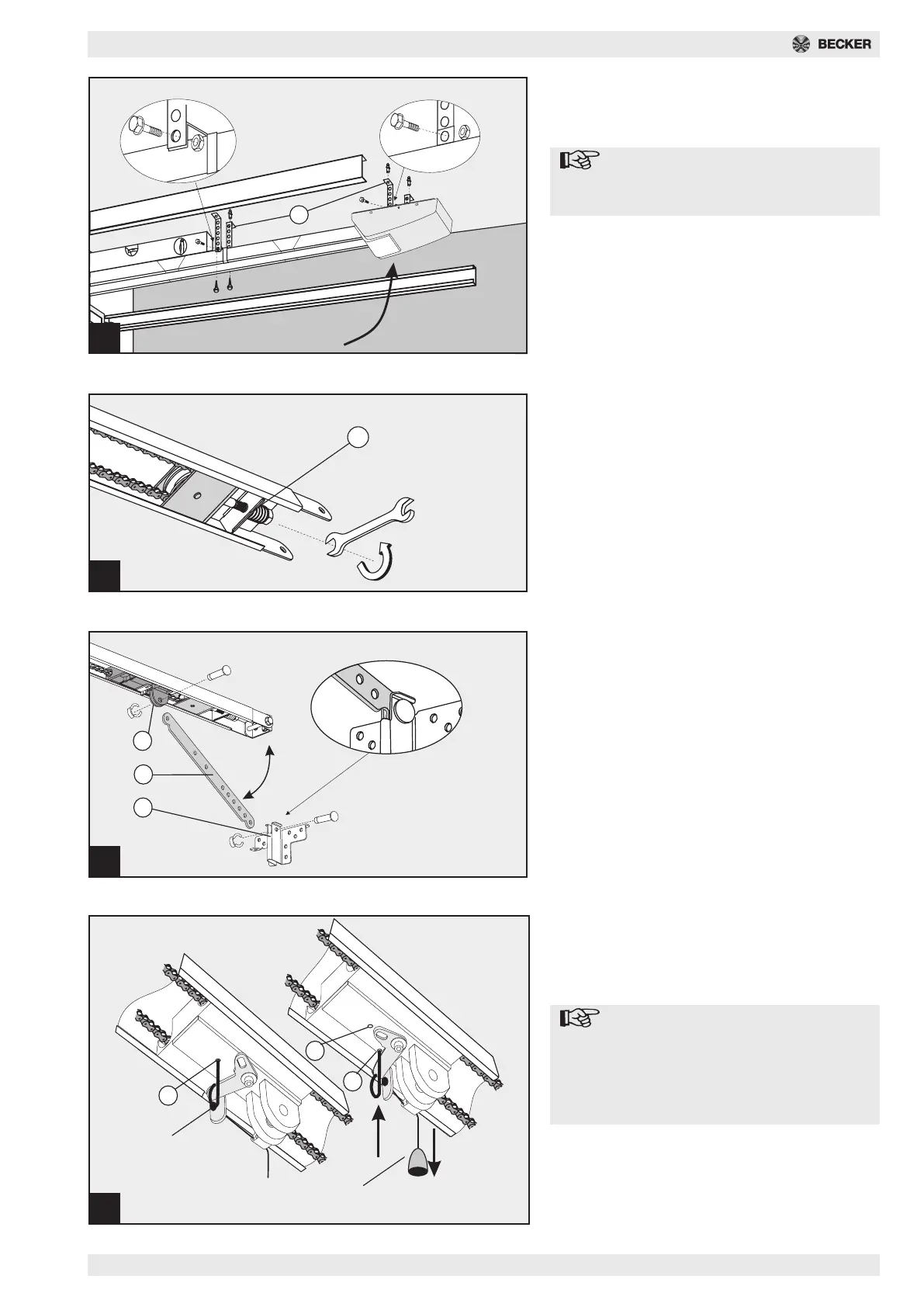 Zet de schuifstang (12) tussen de loopslede (4) en