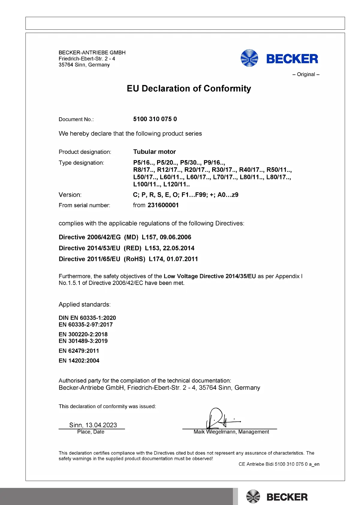Becker C18 PLUS - Declaration of Conformity