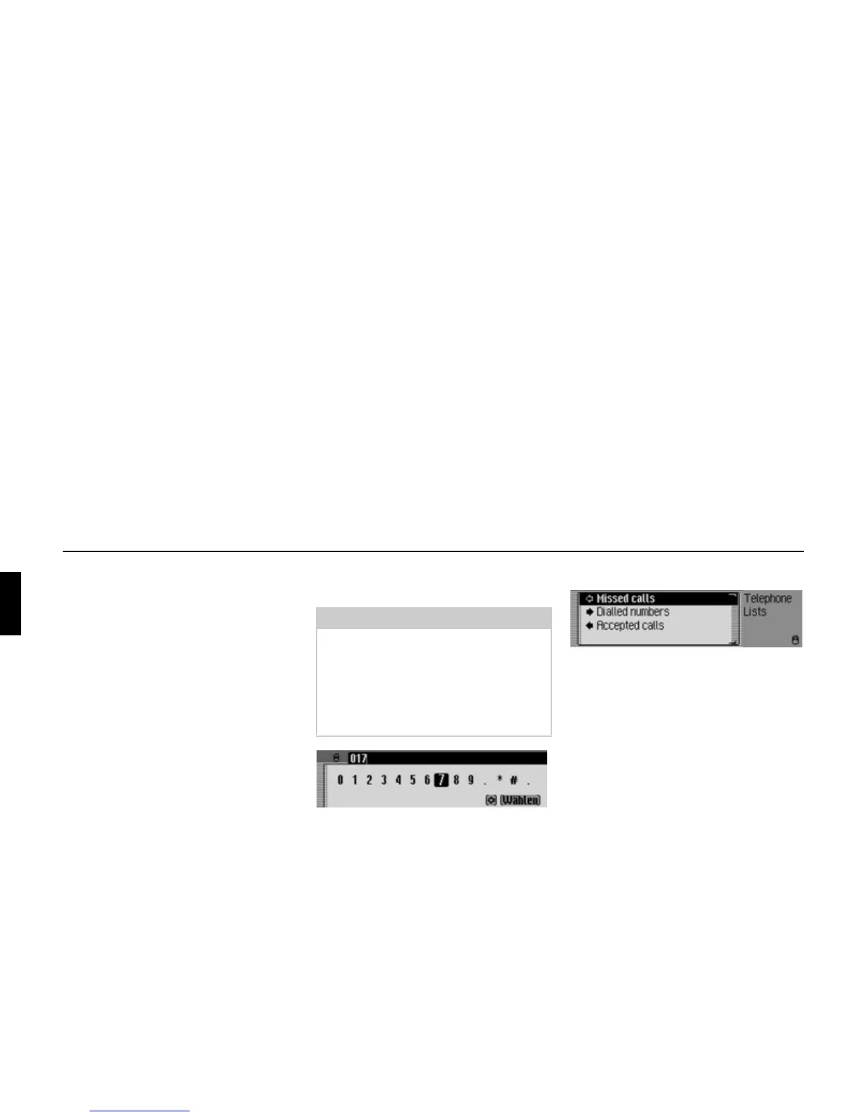 • Calling up the call list with the missed