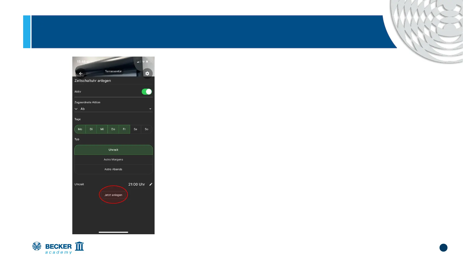 • By pressing "Create now" the timer is saved