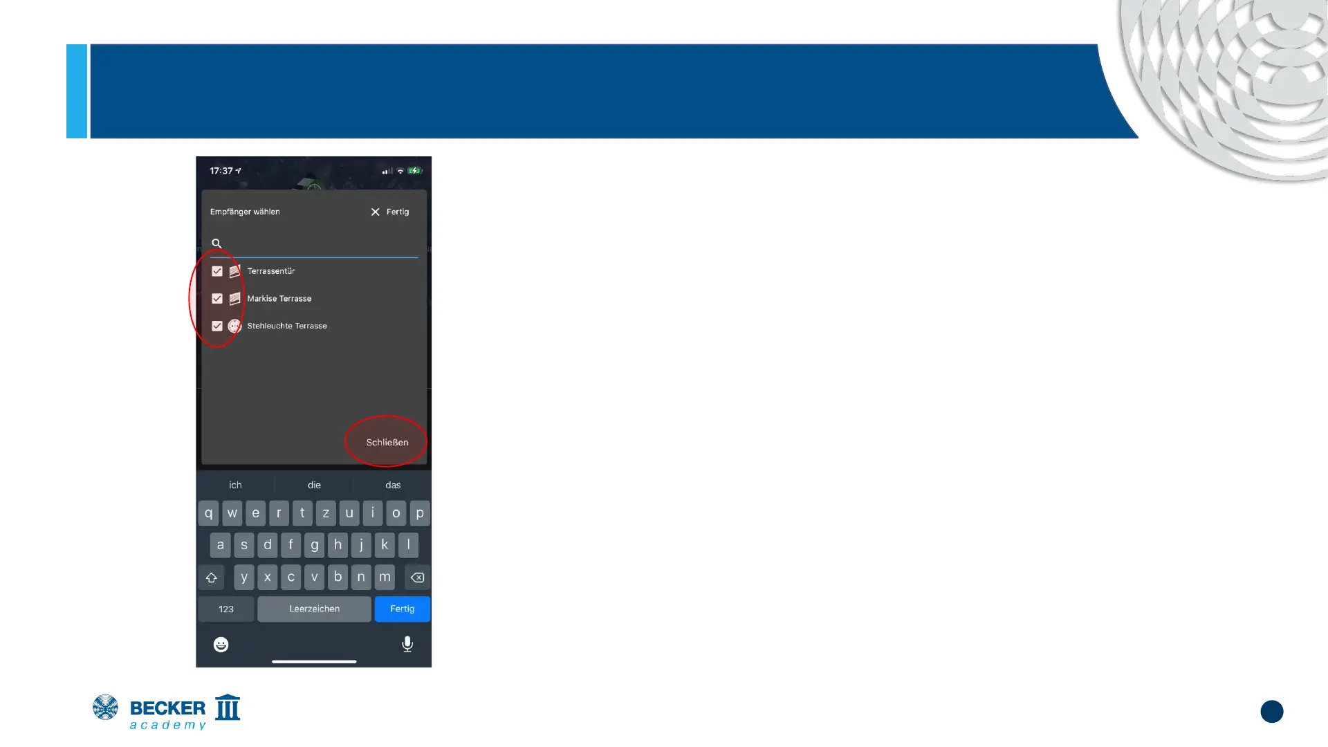 Select the receivers you want to control in