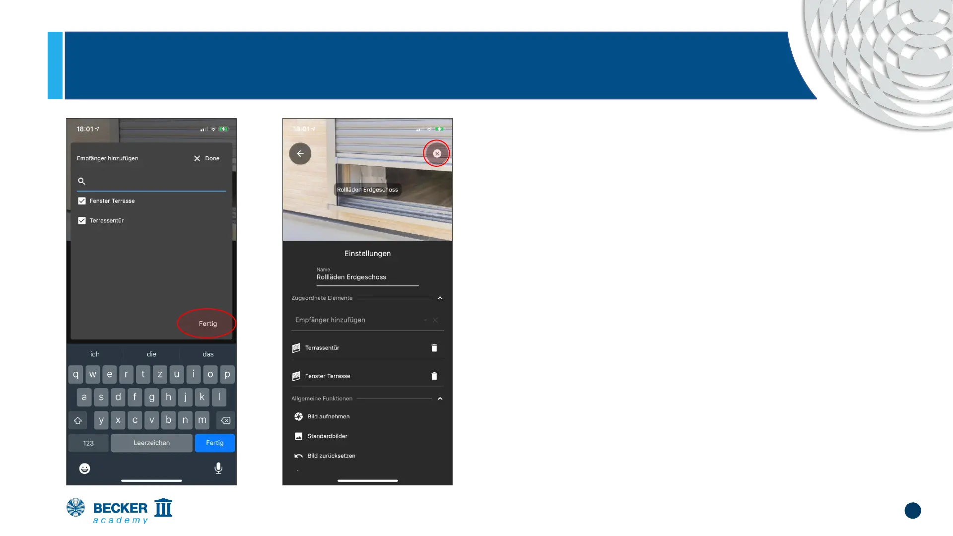 Return to operating mode by tapping on the