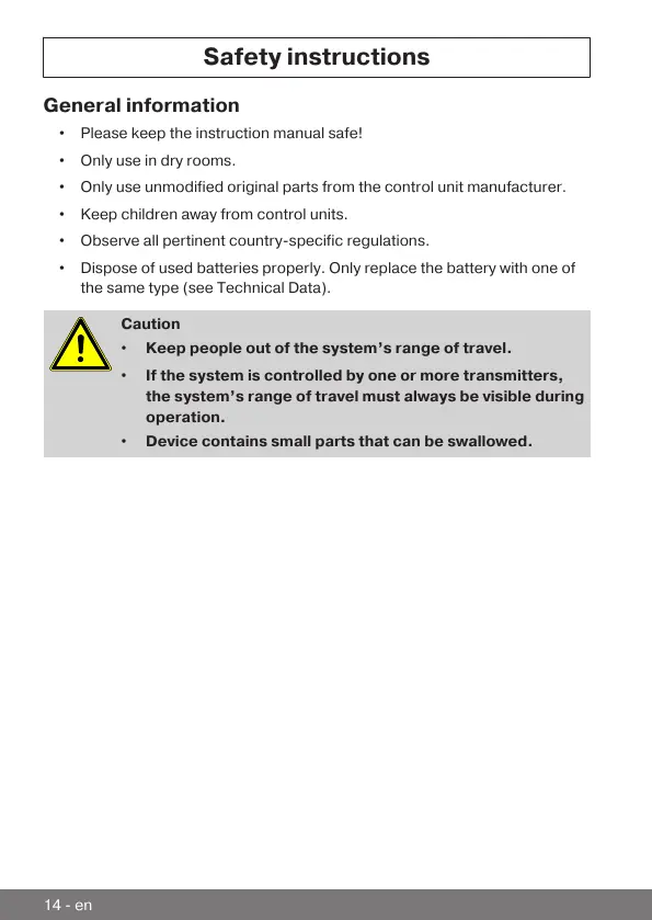 • If the system is controlled by one or more transmitters,
