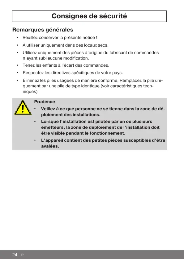 • Utilisez uniquement des pièces d’origine du fabricant de commandes