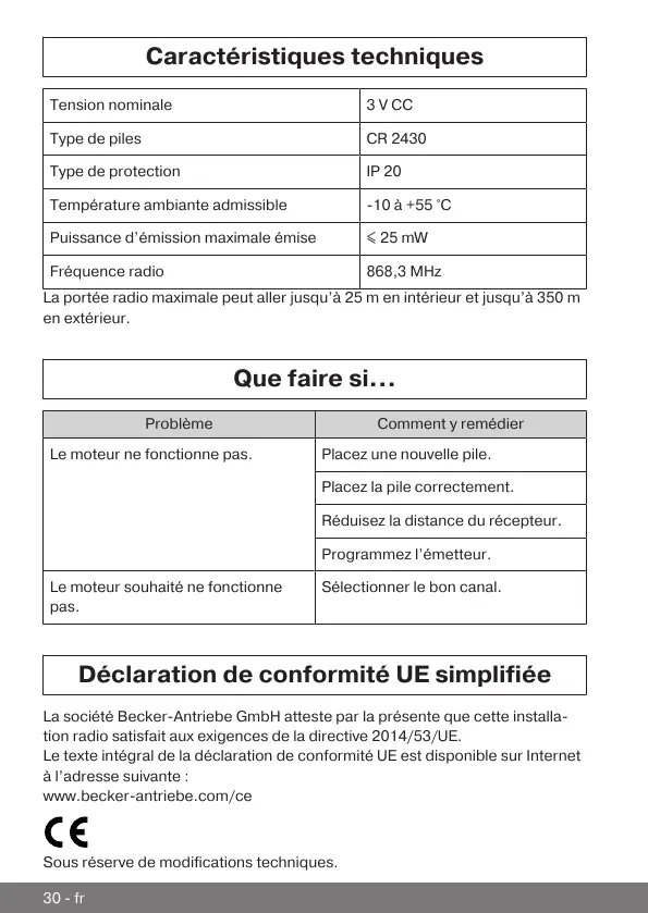 Le texte intégral de la déclaration de conformité UE est disponible sur Internet