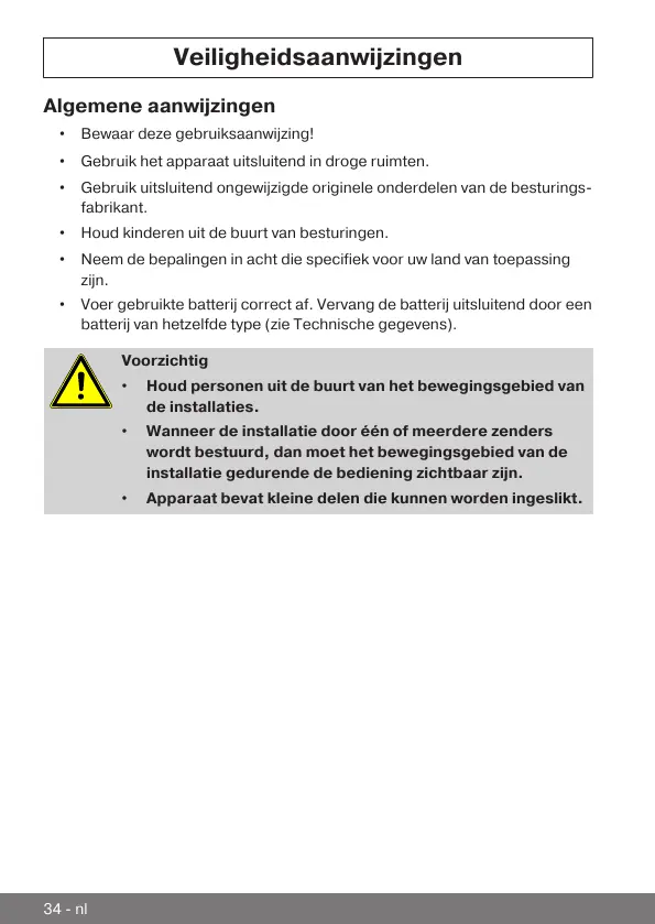 • Gebruik uitsluitend ongewijzigde originele onderdelen van de besturings-