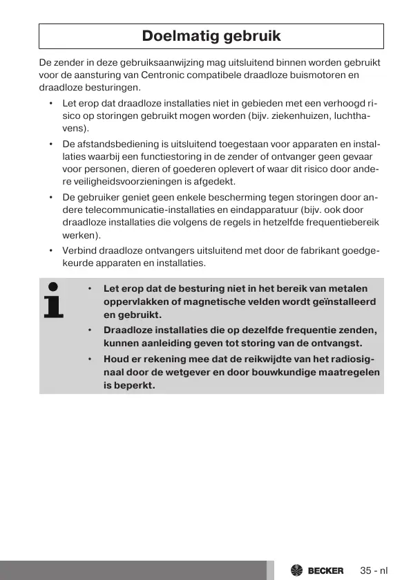 De zender in deze gebruiksaanwijzing mag uitsluitend binnen worden gebruikt