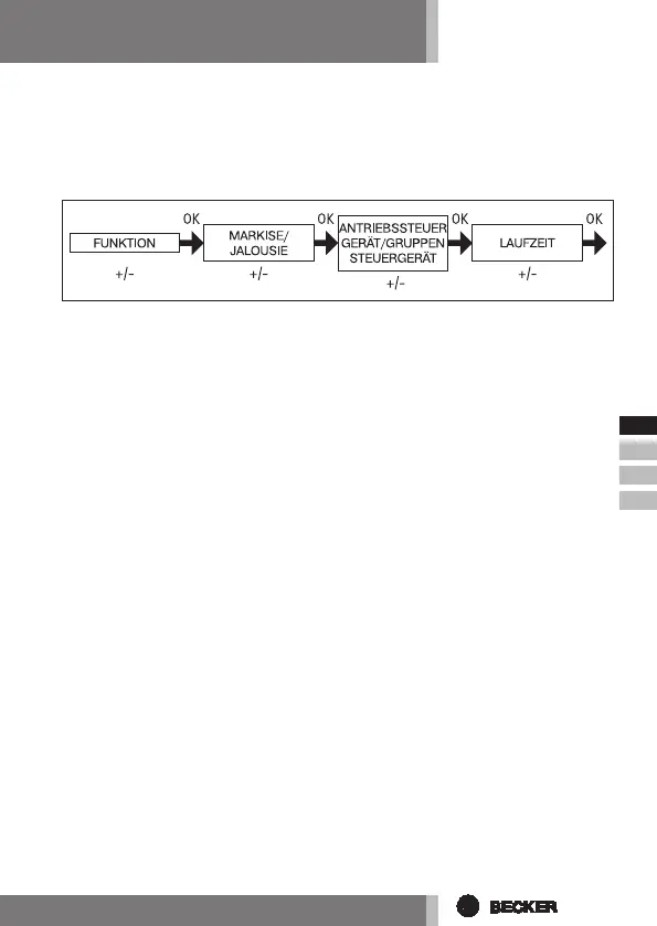 6. Mit der +/- Taste können Sie das gewünschte Steuergerät (ANTRIEBSS-