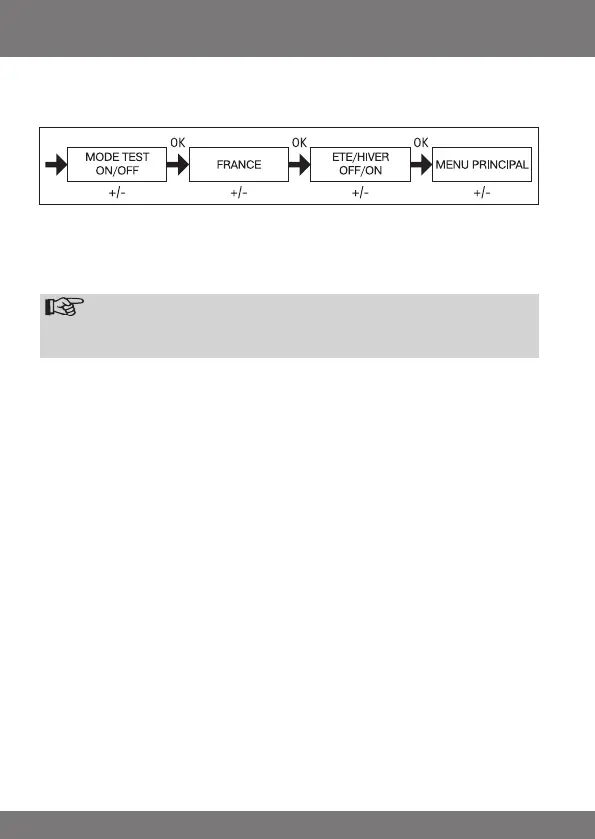 2. Vous pouvez activer ou désactiver le MODE TEST avec la touche +/- (ON/