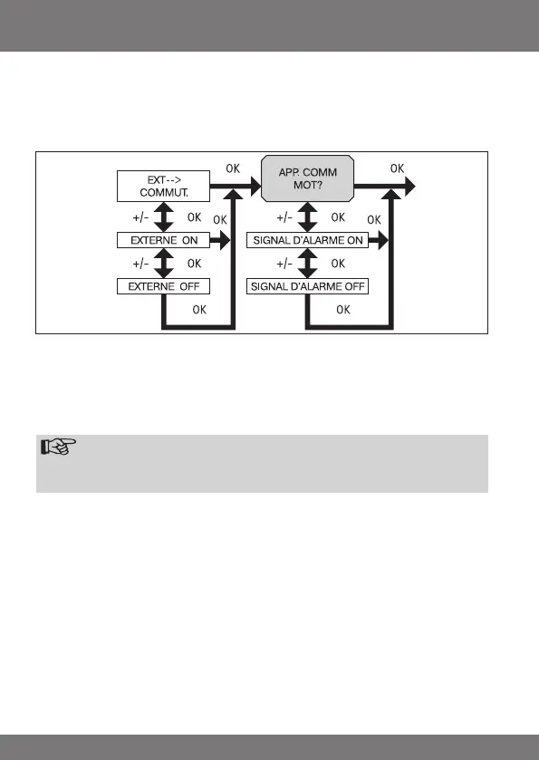 COMMUT EXT/EXTERNE ON/ EXTERNE OFF, SIGNAL D’ALARME ON/OFF