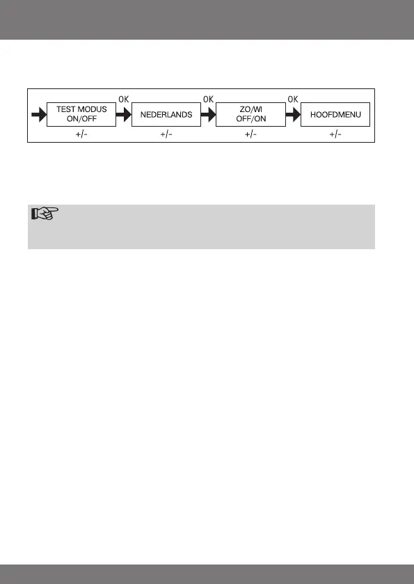 2. Met der +/- toets kan de TEST MODUS worden geactiveerd of gedeactiveerd