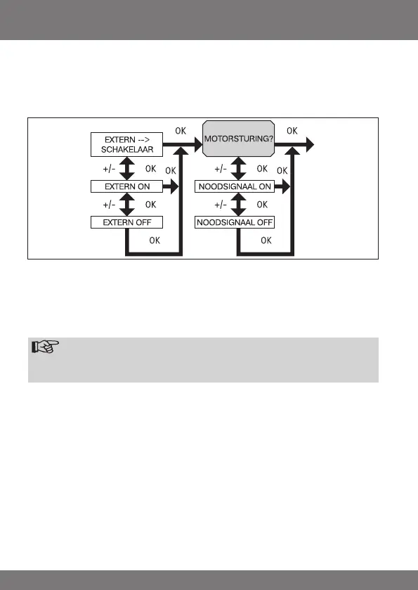 2. Met der +/- toets is het mogelijk de gewenste instelling van de stuuringangen