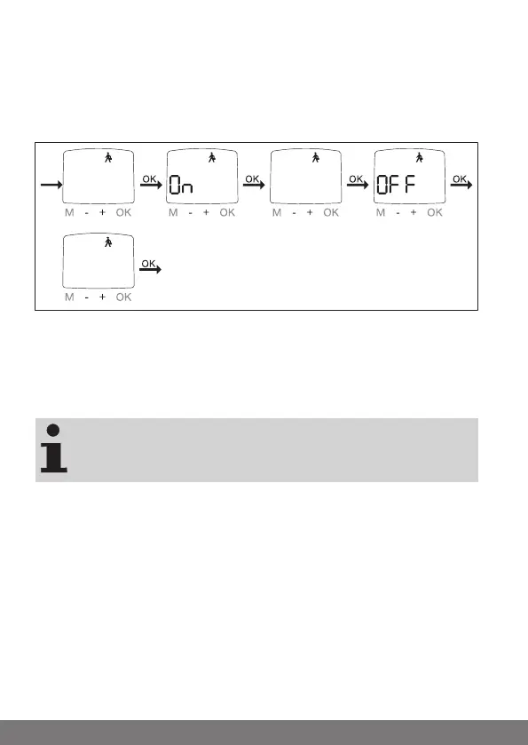 5. Met de +/- toets kunt u het NOODSIGNAAL op ON of OFF schakelen. Be-