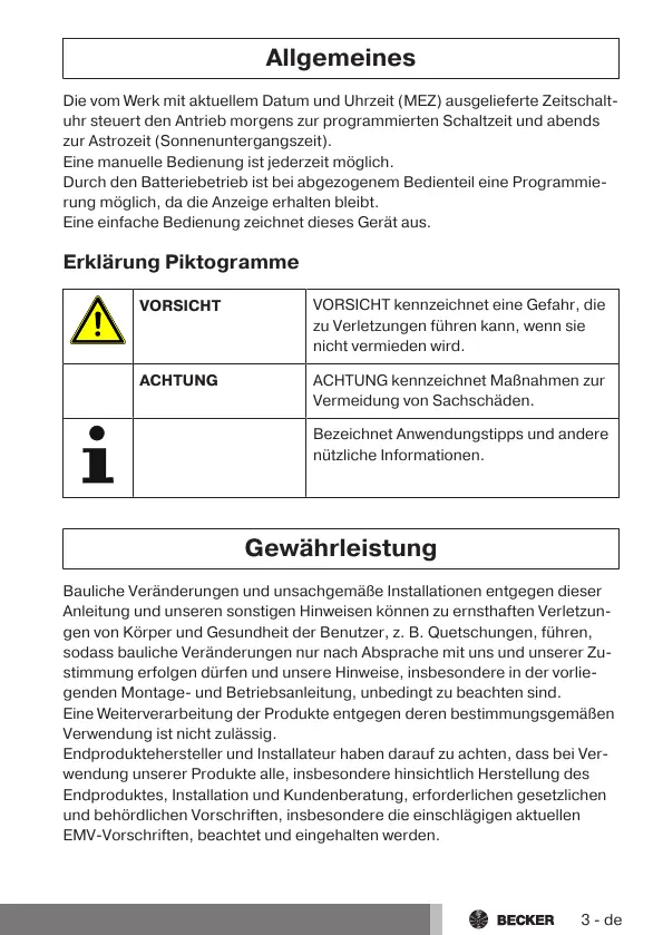 genden Montage- und Betriebsanleitung, unbedingt zu beachten sind.