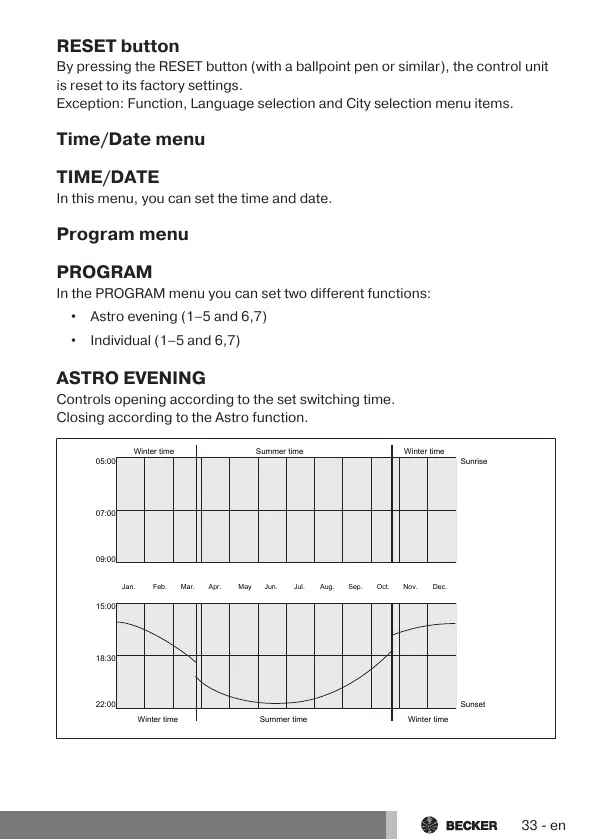 By pressing the RESET button (with a ballpoint pen or similar), the control unit