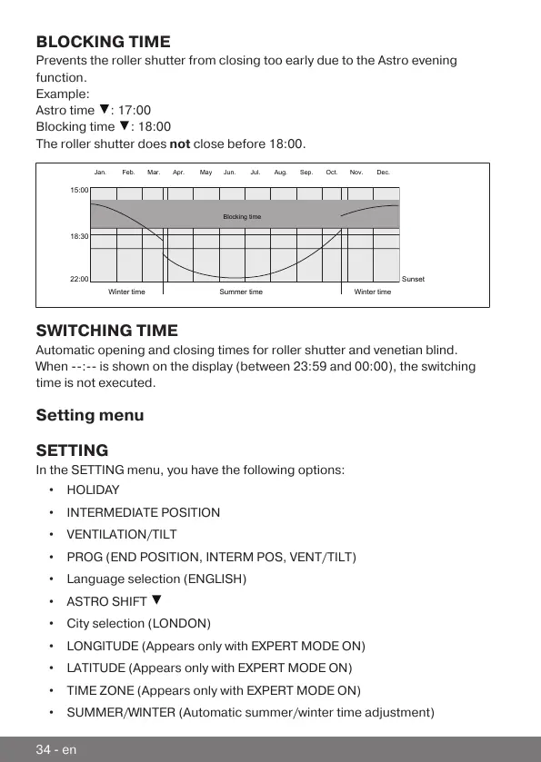 Prevents the roller shutter from closing too early due to the Astro evening