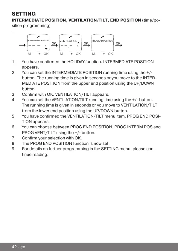 INTERMEDIATE POSITION, VENTILATION/TILT, END POSITION (time/po-