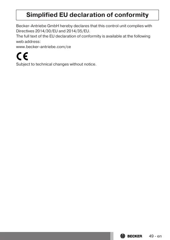 Becker-Antriebe GmbH hereby declares that this control unit complies with