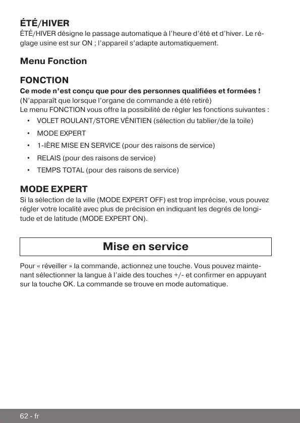 • 1-IÈRE MISE EN SERVICE (pour des raisons de service)