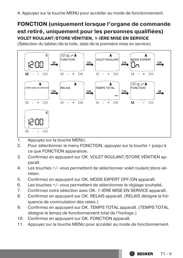 4.Les touches+/- vous permettent de sélectionner volet roulant/store vé-