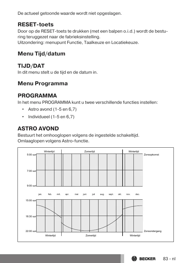Door op de RESET-toets te drukken (met een balpen o.i.d.) wordt de bestu-