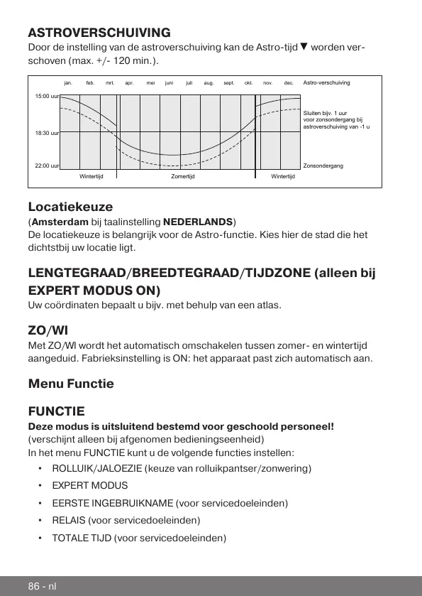 Door de instelling van de astroverschuiving kan de Astro-tijd