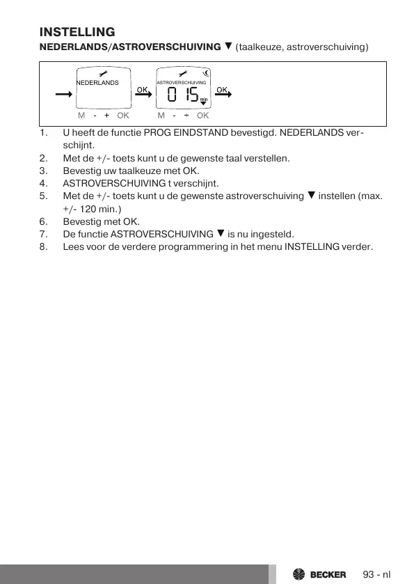 1.U heeft de functie PROG EINDSTAND bevestigd. NEDERLANDS ver-