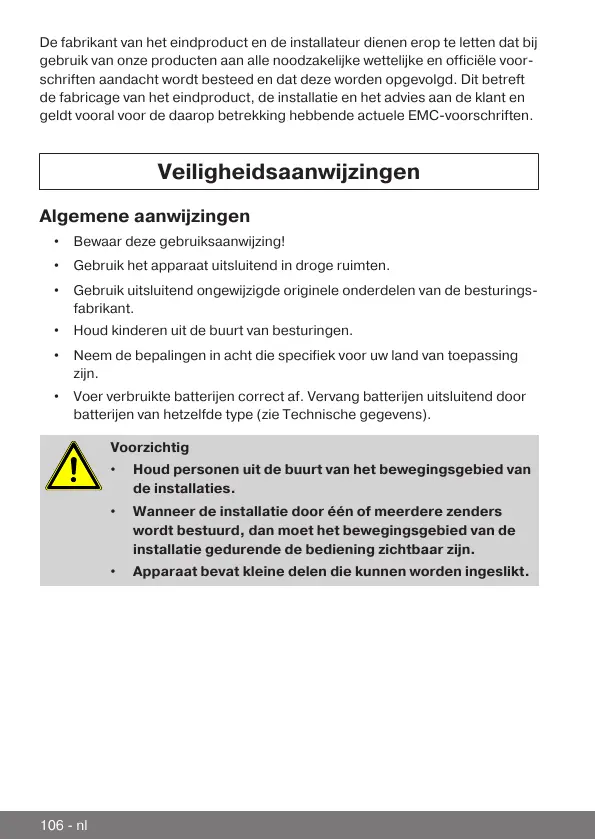 De fabrikant van het eindproduct en de installateur dienen erop te letten dat bij
