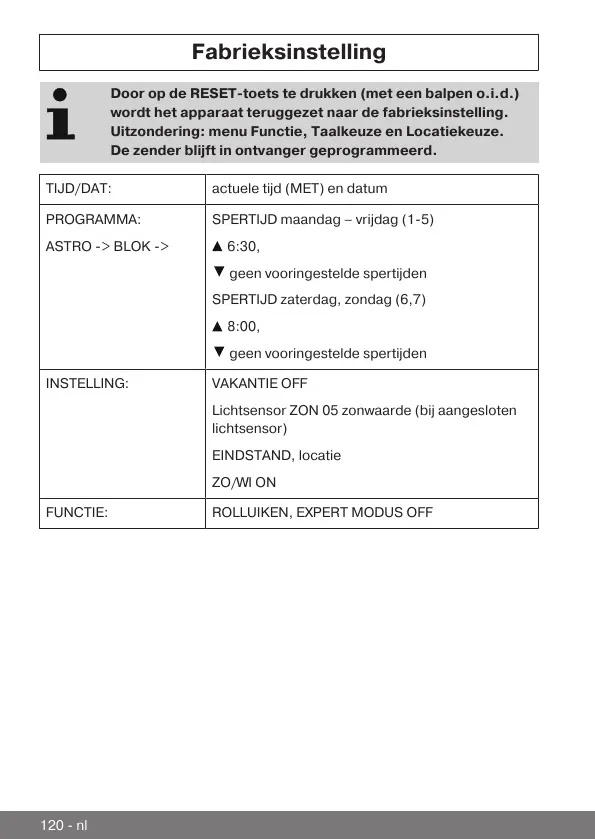 FUNCTIE:ROLLUIKEN, EXPERT MODUS OFF