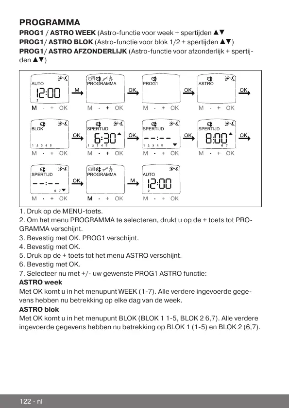 PROG1/ ASTRO BLOK (Astro-functie voor blok 1/2 + spertijden )
