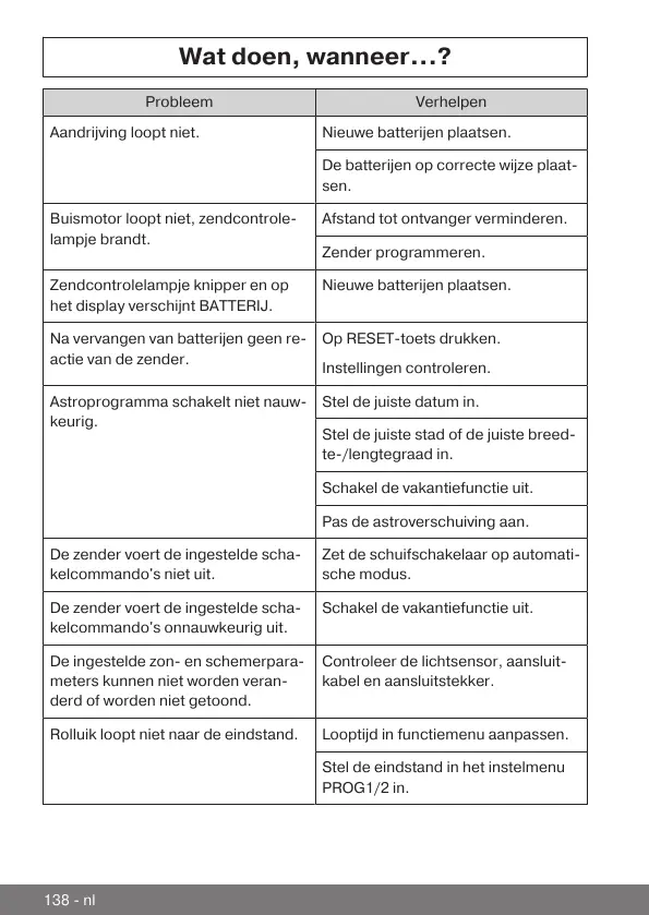Buismotor loopt niet, zendcontrole-