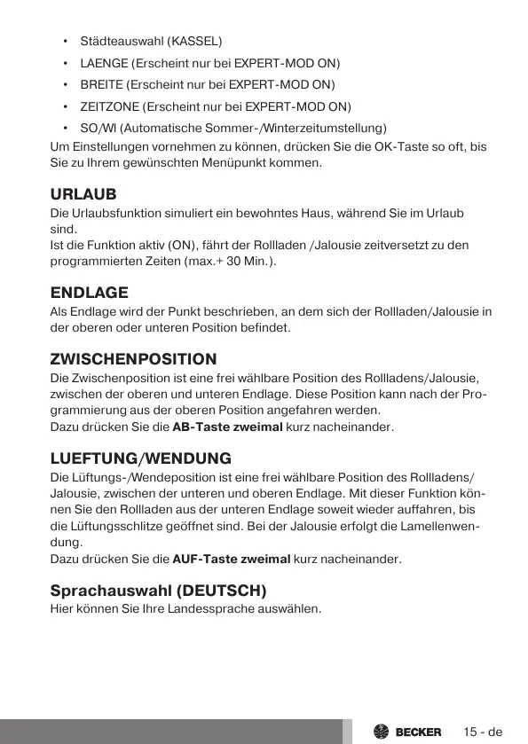 Jalousie, zwischen der unteren und oberen Endlage. Mit dieser Funktion kön-