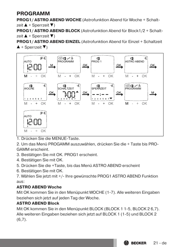 PROG1/ ASTRO ABEND WOCHE (Astrofunktion Abend für Woche + Schalt-
