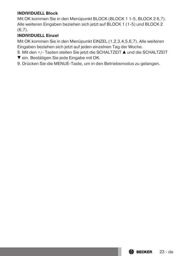 8. Mit den +/- Tasten stellen Sie jetzt die SCHALTZEIT