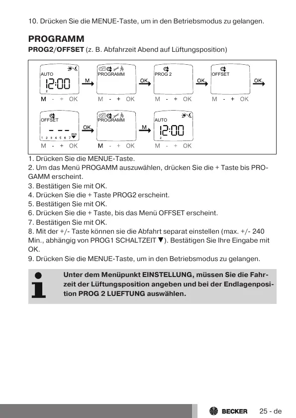 PROG2/OFFSET (z. B. Abfahrzeit Abend auf Lüftungsposition)
