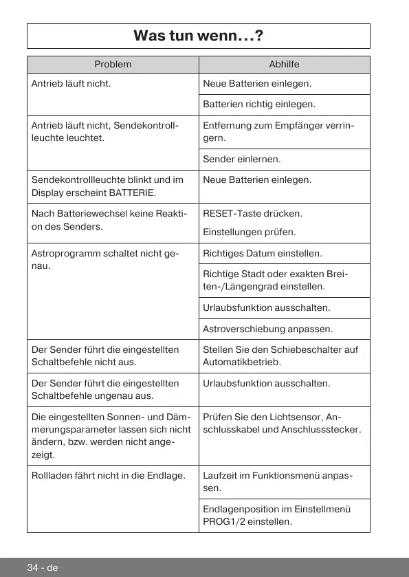 Antrieb läuft nicht.Neue Batterien einlegen.