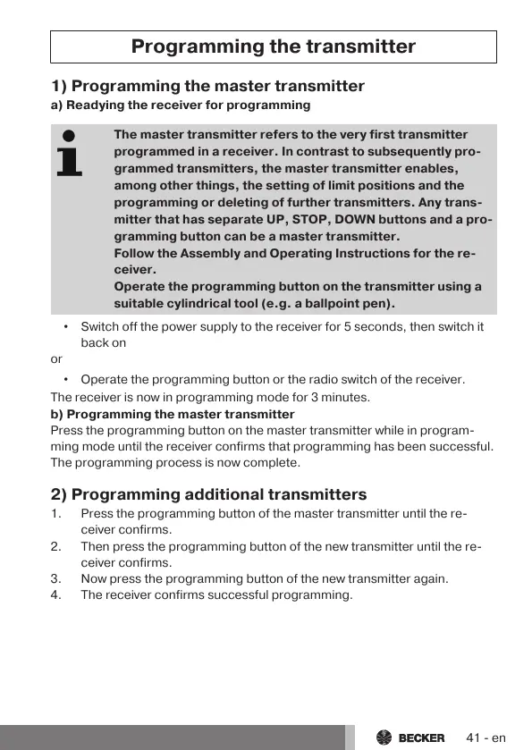mitter that has separate UP, STOP, DOWN buttons and a pro-