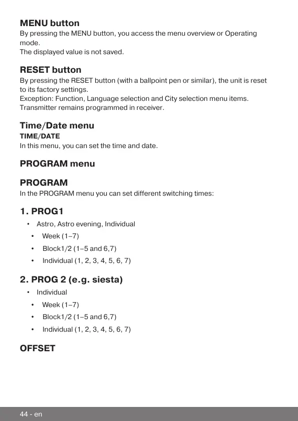 By pressing the RESET button (with a ballpoint pen or similar), the unit is reset
