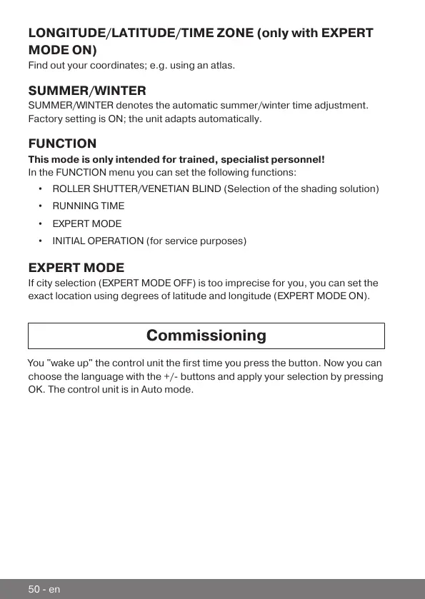 LONGITUDE/LATITUDE/TIME ZONE (only with EXPERT