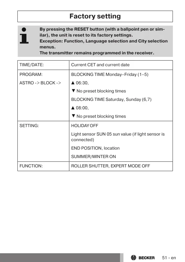 FUNCTION:ROLLER SHUTTER, EXPERT MODE OFF