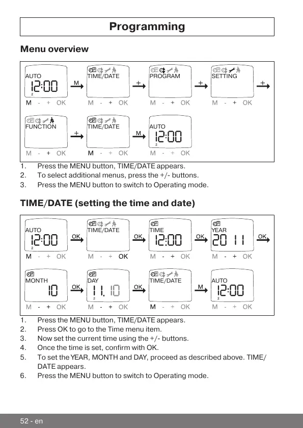 5.To set the YEAR, MONTH and DAY, proceed as described above. TIME/