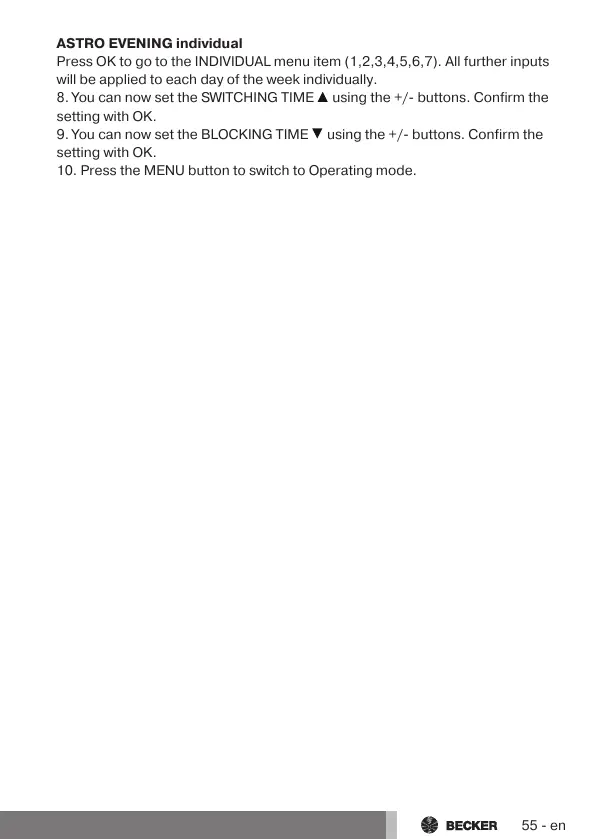 Press OK to go to the INDIVIDUAL menu item (1,2,3,4,5,6,7). All further inputs