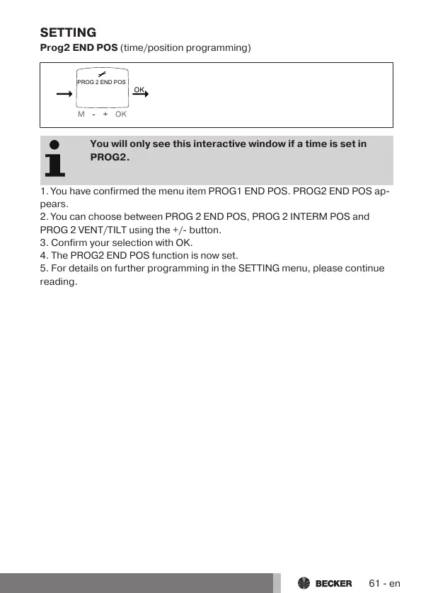 2. You can choose between PROG 2 END POS, PROG 2 INTERM POS and