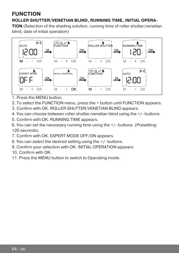 FUNCTION ROLLER SHUTTER RUNNING TIME
