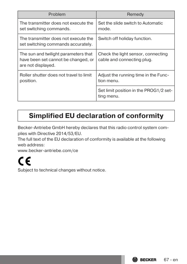 Becker-Antriebe GmbH hereby declares that this radio control system com-