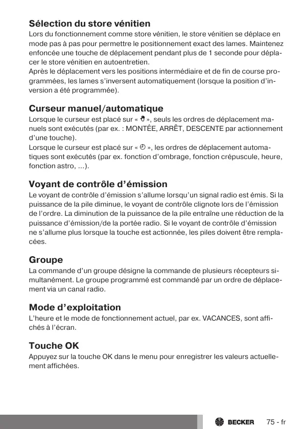 nuels sont exécutés (par ex.: MONTÉE, ARRÊT, DESCENTE par actionnement
